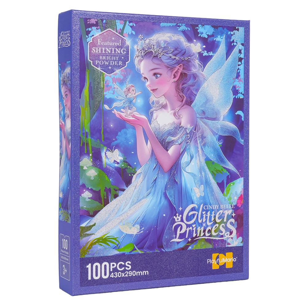 - Detské puzzle 100 dielikov CINDY BELLE GLITTER PRINCESS - modrá princezná