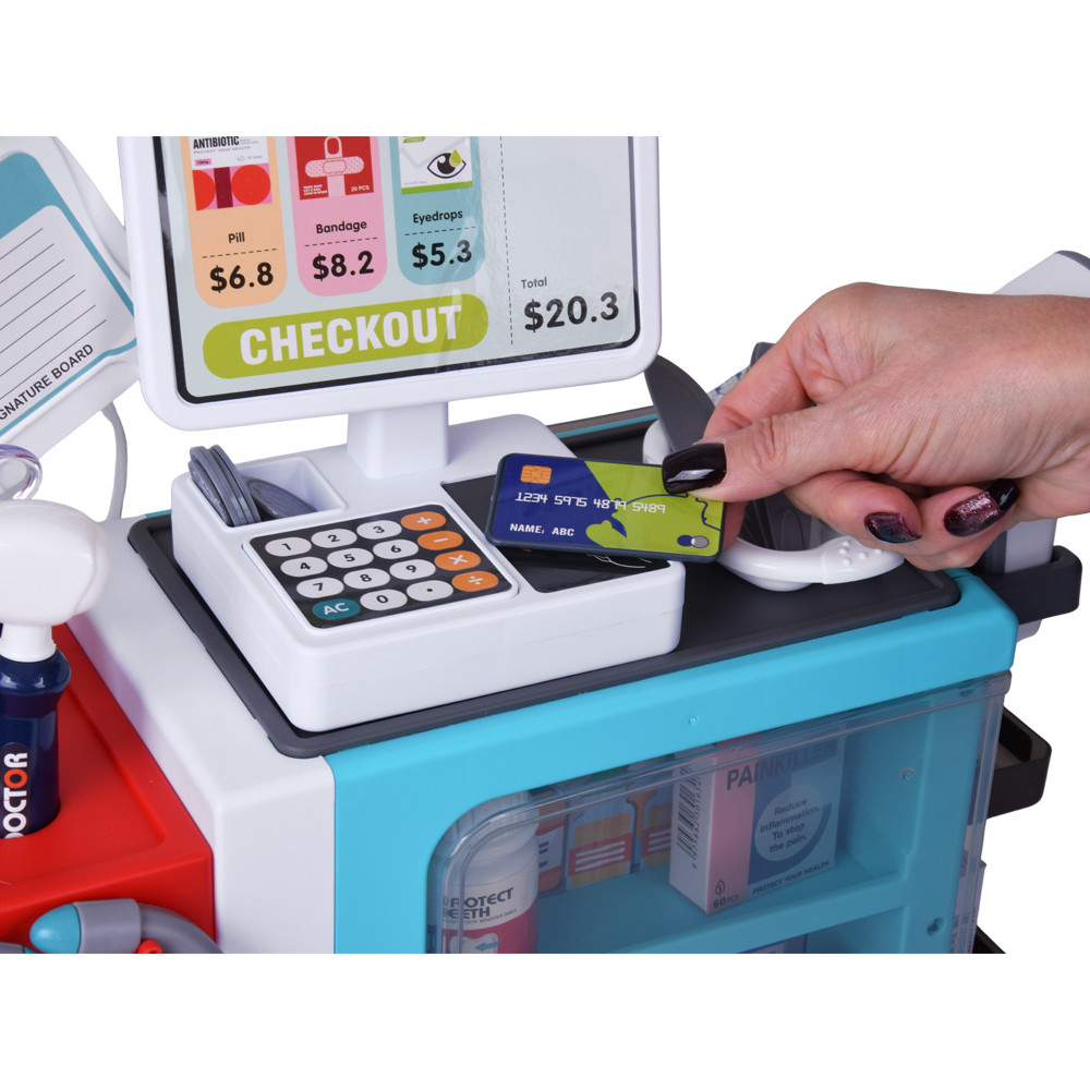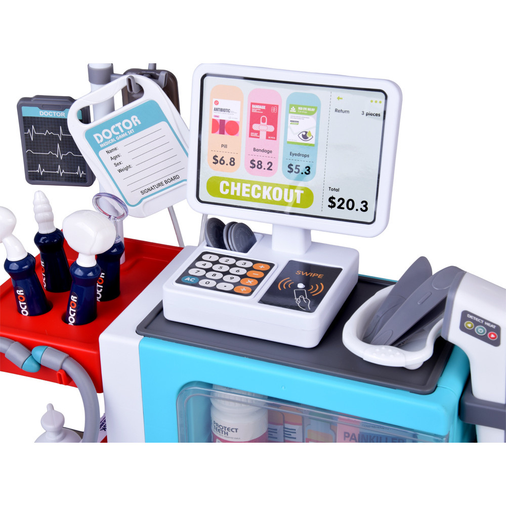 Objavte mimoriadnu vzdelávaciu sadu Malý lekár, ktorá prenesie vaše dieťa do fascinujúceho sveta medicíny. Táto rozsiahla hračkárska sada umožňuje vášmu drobcovi vžiť sa do úlohy lekára, lekárnika alebo pacienta. Vďaka rozsiahlemu vybaveniu vytvárajú klinika, nemocnica a lekáreň realistické prostredie pre kreatívnu hru a zážitkové učenie. Sada obsahuje množstvo zdravotníckych pomôcok, ktoré vám umožňujú hrať rôzne scény zo života lekárov a pacientov: stetoskop, teplomer, injekčnú striekačku, lieky a lekárenské príslušenstvo. Stetoskop so zvukmi tlkotu srdca a teplomer s charakteristickým pípaním dodávajú hre autentickosť. Najväčším lákadlom je interaktívna pokladňa, ktorá pri plnení produktov vydáva realistické zvuky. Sada obsahuje platobný terminál, ktorý pípa pri vložení karty, rovnako ako v skutočnom obchode. Možnosť platiť kartou alebo hotovosťou učí deti základy financií a riadenia transakcií. Táto interaktívna vzdelávacia sada je skvelým darčekom pre zvedavé deti. Hra na lekára a lekáreň rozvíja fantáziu, zdravotné znalosti a empatiu. Vďaka zvukom, realistickým doplnkom a rôznym funkciám vám sada poskytne hodiny kreatívnej hry doma. Sada je zabalená vo farebnej krabičke, ideálna ako darček.