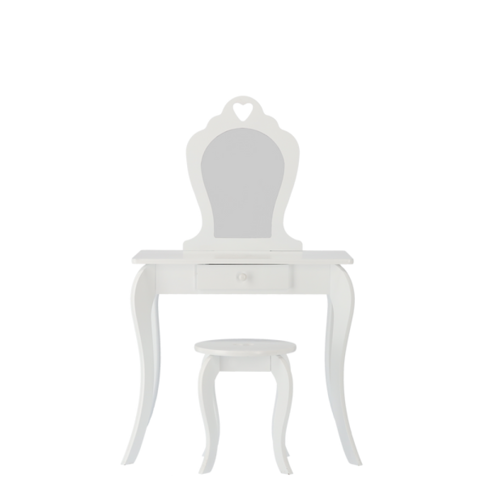 Tento očarujúci toaletný stolík je snom každého malého dievčatka, ktoré sa rado parádi. Poskytuje ideálne miesto na česanie vlasov, skúšanie prvých sponiek či hru na salón krásy. Jemný a prepracovaný dizajn sa harmonicky hodí do každej detskej izby a podporuje kreativitu a hru. Bezpečné materiály zaručujú, že stolík je odolný a vhodný pre každodenné používanie, pričom každý detail je navrhnutý s ohľadom na pohodlie a bezpečnosť vášho dieťaťa.