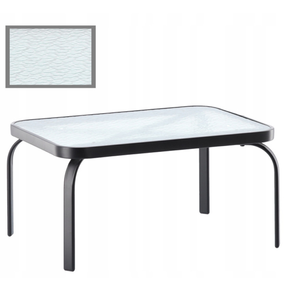 Súčasťou setu je aj moderný stolík s doskou z tvrdeného skla s transparentnou mozaikovou textúrou. Sklo s hrúbkou 5 mm je nielen estetické, ale aj bezpečné, odolné a veľmi jednoduché na údržbu. Stolík si vyžaduje jednoduchú montáž.