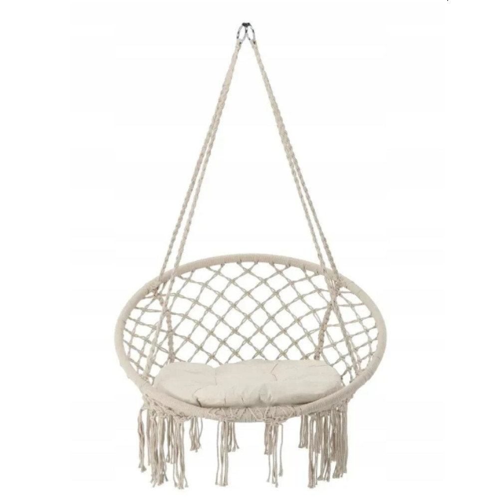 Prineste si domov novú dimenziu relaxu! Či už ide o roh obývacej izby, terasu alebo tienisté miesto v záhrade, toto závesné kreslo v bohémskom štýle sa stane vaším ostrovom pokoja. Elegantný, ručne tkaný lanový rám a romantické strapce poskytujú nielen pohodlie, ale aj jedinečný estetický zážitok.