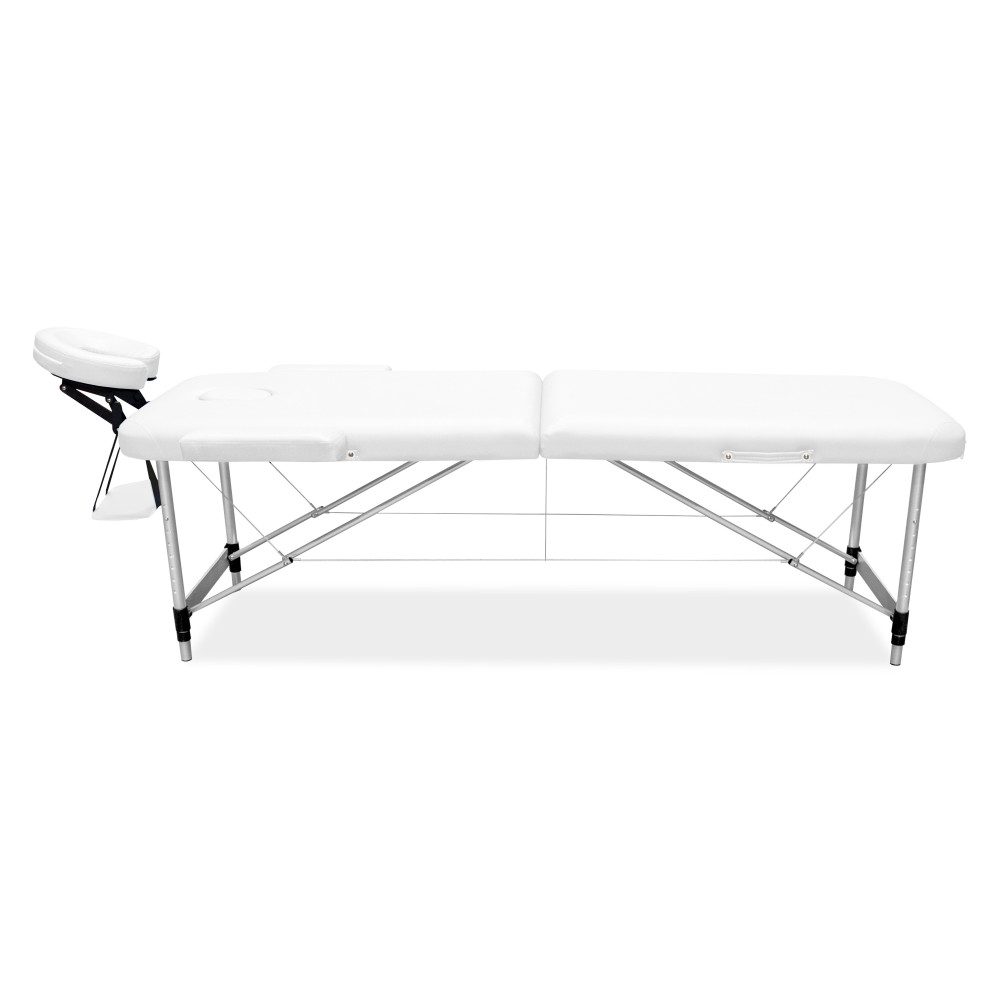 INLEA Skladací masážny stôl dvojdielny s hliníkovými nohami Relax - biely