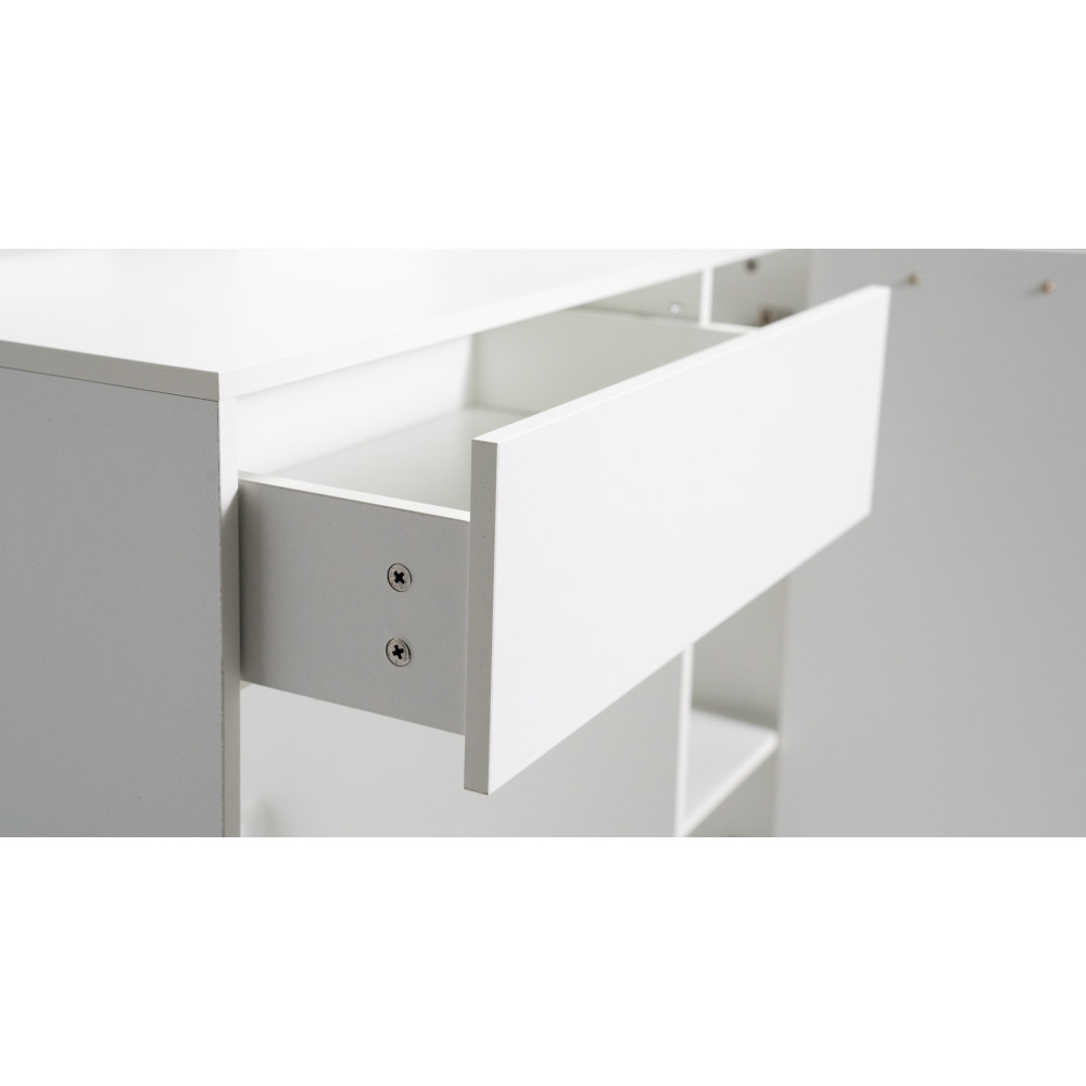 Tento elegantný biely toaletný stolík je ideálnym doplnkom do každej spálne alebo šatne. Veľké zrkadlo vám pomôže s každodennou prípravou, zatiaľ čo jednoduchý a čistý dizajn dodáva priestoru moderný nádych. Jednoduchý štýl stolíka umožňuje jeho jednoduché kombinovanie s iným nábytkom. Praktický dizajn vám dáva možnosť pridať viac personalizovaných doplnkov.