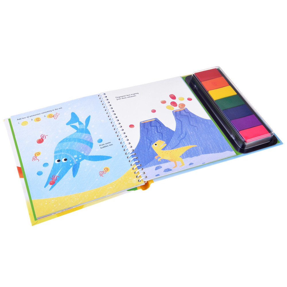 Kreatívna kniha na maľovanie prstami 64 strán 7 farieb DINOSAURUS Fingerprint Activities