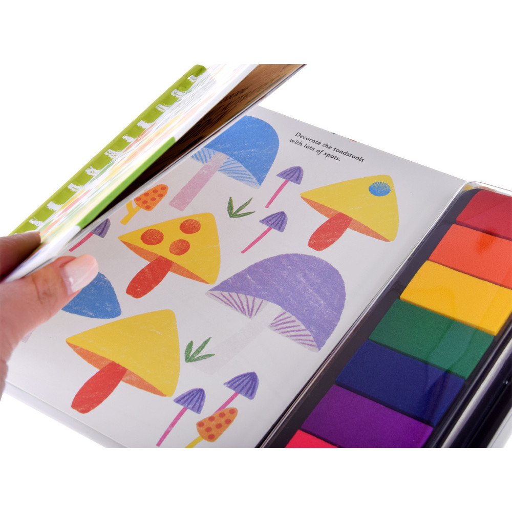 Na každej strane je zobrazený iný kvet a úloha, ktorú treba splniť. Na boku knihy sa nachádzajú špongie namočené v 7 rôznych farbách farieb. Deti môžu pomocou farieb a prstov vytvárať rôzne obrázky. Pokyny sú napísané v angličtine, ale jednoduché a intuitívne obrázkové pokyny zabezpečujú, že deti ich ľahko dodržia.