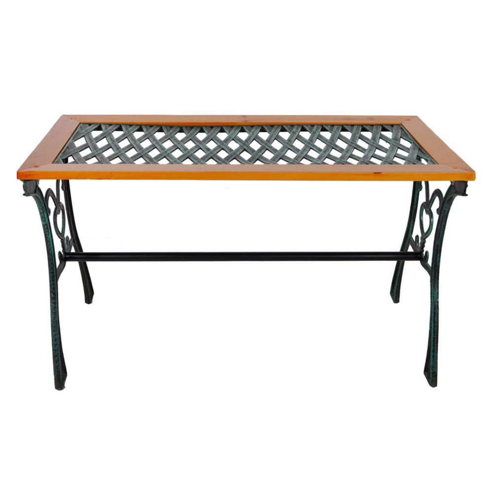 Jeho dizajn bol inšpirovaný klasickou eleganciou liatinového nábytku a hrejivosťou prírodného dreva. Robustné, no jemne zdobené nohy zabezpečujú stabilitu, zatiaľ čo mriežkovaná doska stola dodáva celkovému vzhľadu ľahkosť a vzdušnosť.
