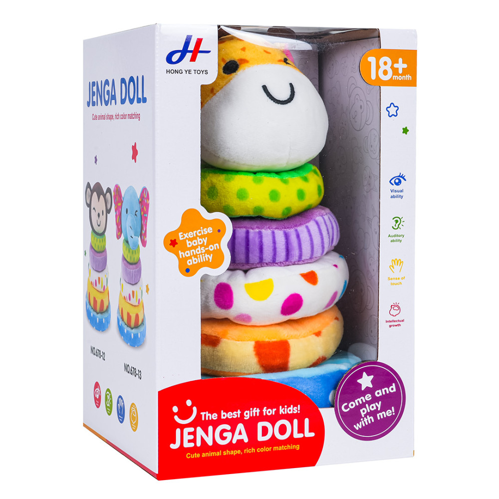 Mäkká plyšová pyramída pre najmenších JENGA DOLL - žirafa