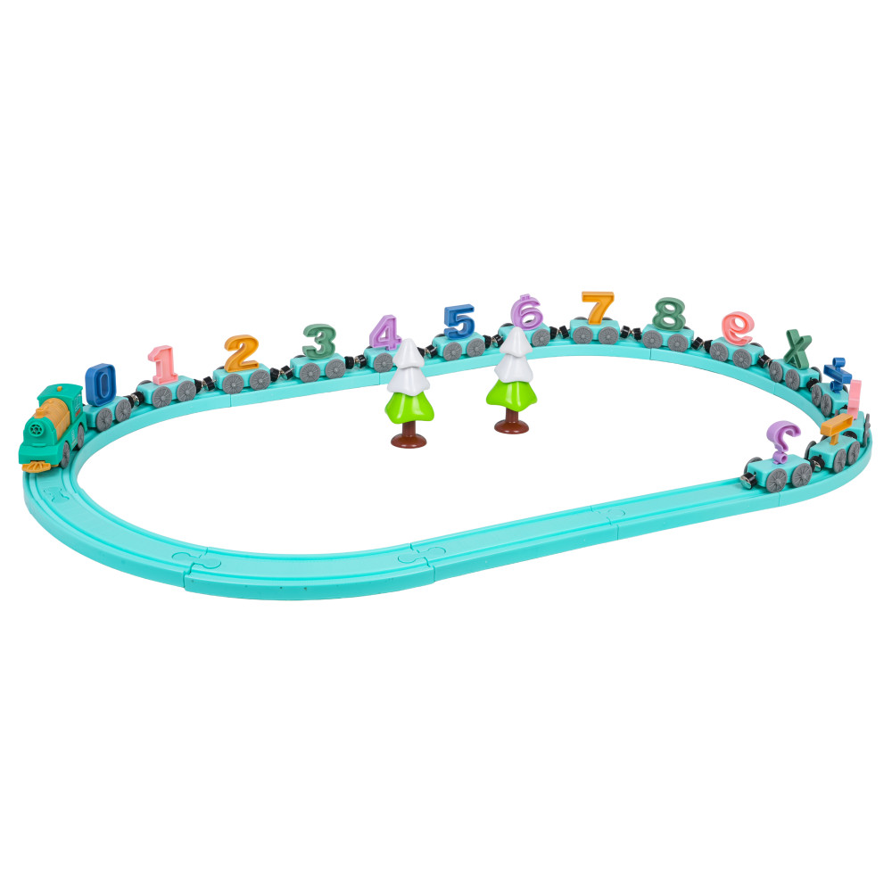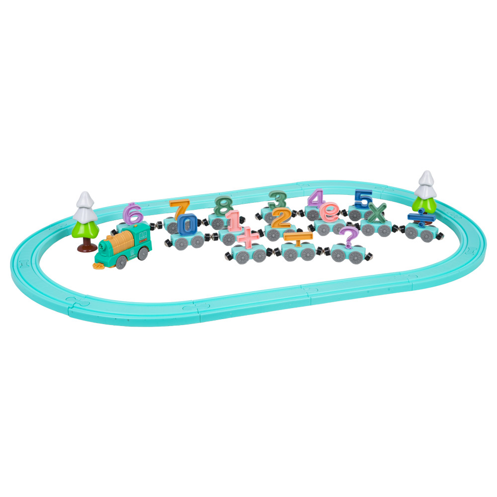 Úžasná vláčikodráha, ktorá spája učenie so zábavou, je ideálna pre deti od 3 rokov. Súprava sa skladá z koľají a vláčika. Vláčik má 15 vagónov, každý s iným číslom alebo matematickým symbolom. Vagóny sú spojené magnetmi a dajú sa usporiadať v ľubovoľnom poradí, čím sa vytvorí matematická skladačka. Súprava je vyrobená z najkvalitnejších a bezpečných materiálov, čo zaručuje dlhú životnosť. Vláčik je napájaný batériou.