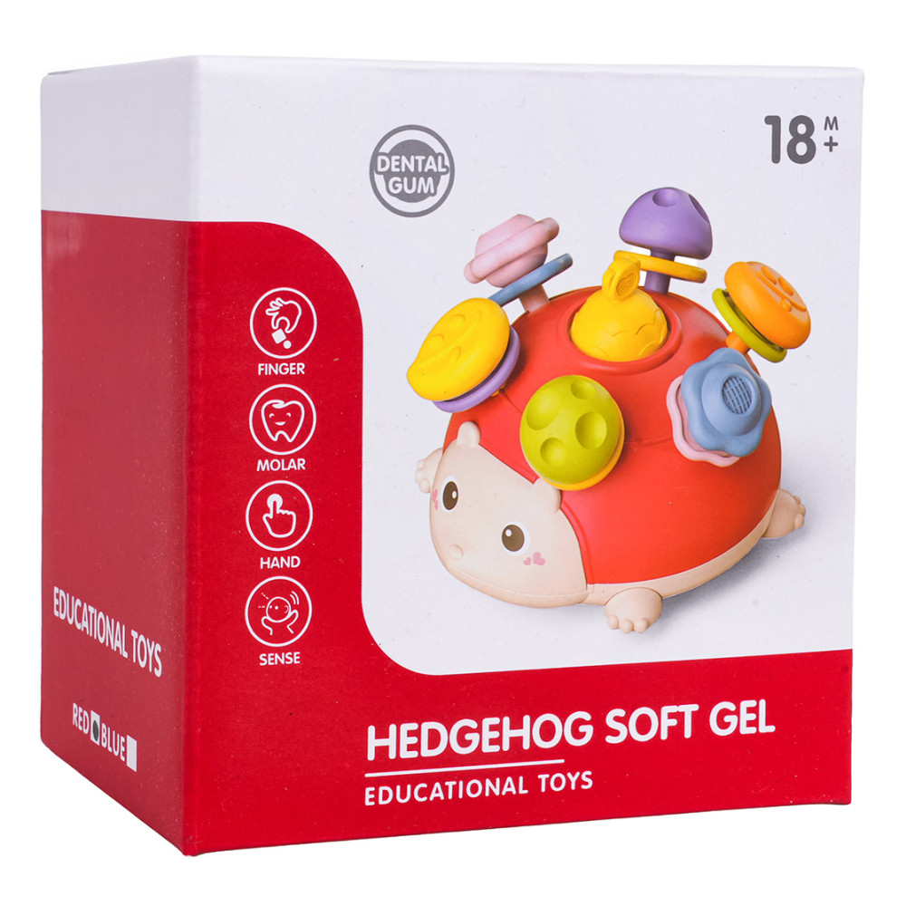 Multifunkčná, senzorická a manipulačná hračka je určená pre batoľatá od 18 mesiacov. Je vyrobená z materiálov bezpečných pre deti, nemá ostré hrany. Živé farby priťahujú pozornosť najmenších a podporujú vzdelávacie hry. Hračka ponúka deťom veľa možností hry. Výstupky na ježkovi sú mäkké a majú rôzne textúry, čo pomáha pri prerezávaní zúbkov. Pod výstupkami sú farebné krúžky, ktoré pri zatrasení vydávajú hrkavý zvuk. Výstupok v strede vrchnej časti ježka sa dá tlačiť a ťahať, čím sa posilňujú detské prsty. Ruky a nohy ježka sú k telu pripevnené gumičkou, za ktorú môže dieťa ťahať. Pod ježkom sa nachádza roztočák, ktorý sa dá otáčať. Namiesto chvosta má ježko šnúrku, takže sa dá zavesiť napríklad na posteľ.