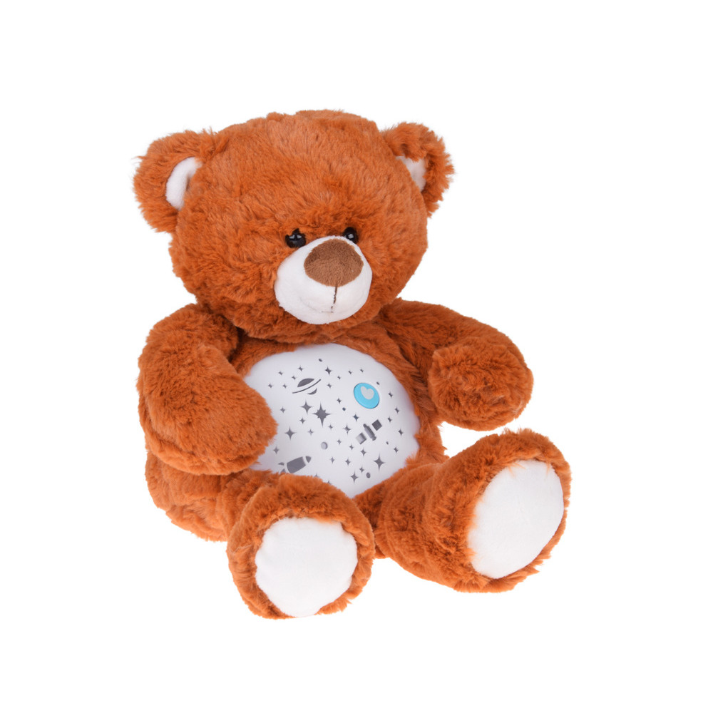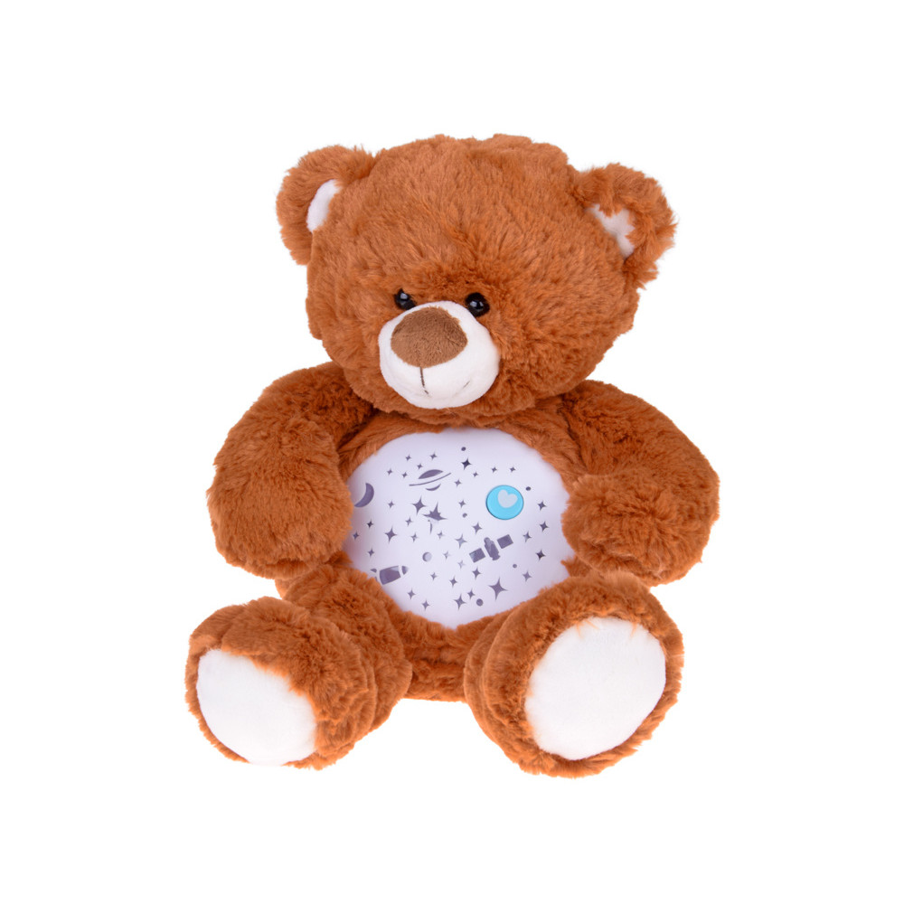 Plyšový hnedý medvedík s hviezdnym projektorom a melódiou BABY DOLL
