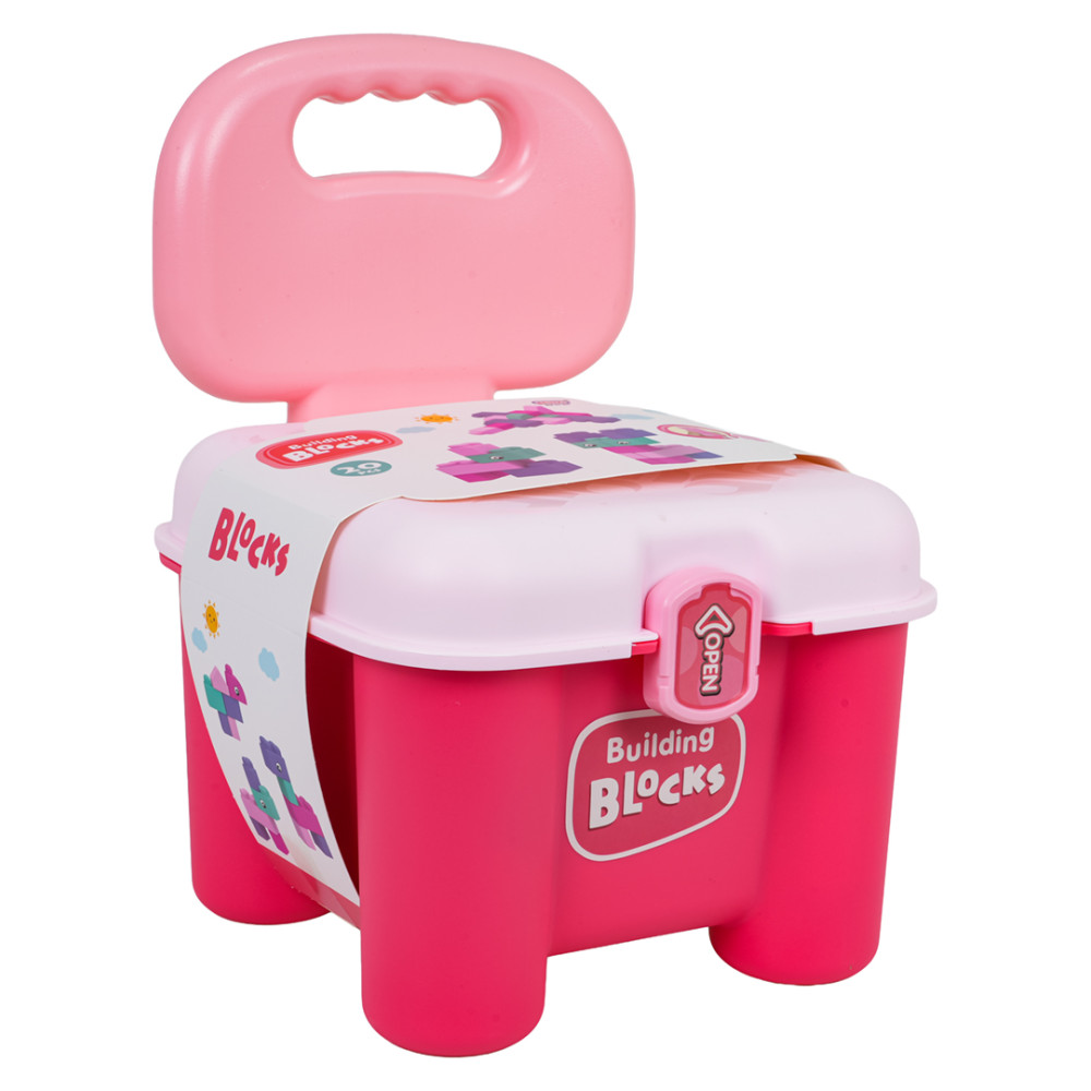 - Sada mäkkých stavebných blokov v úložnom boxe v tvare stoličky 32 prvkov BUILDING BLOCKS - ružová