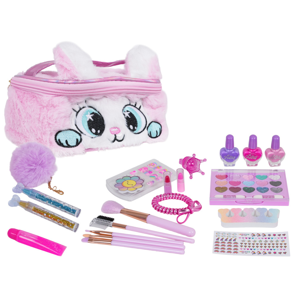 Kozmetická súprava v roztomilej taštičke je ideálna pre deti od 3 rokov. Plyšové mačiatko ukrýva poklady, ako sú laky na nechty, očné tiene, štetce, umelé nechty a mnoho ďalšieho. Súprava je vyrobená z najkvalitnejších materiálov bezpečných pre deti. Kozmetika je hypoalergénna a ľahko sa odstraňuje, stačí použiť mydlo a vodu.