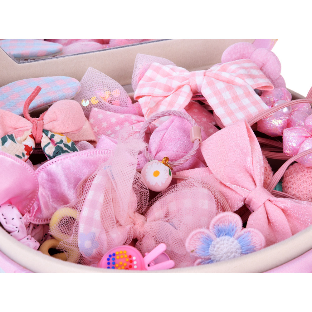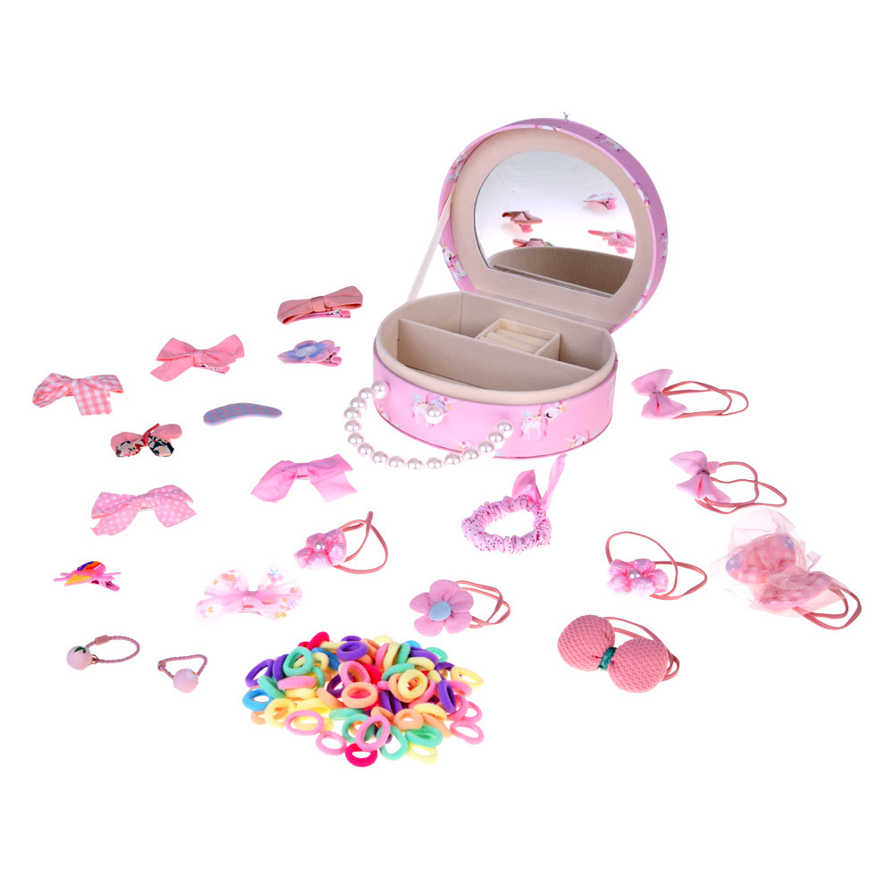 Šperkovnica je snom takmer každého dievčaťa. Miesto na uloženie náhrdelníkov, korálikov, vlasových doplnkov a iných drobností, vďaka ktorému sa budú cítiť ako dospelé ženy. Dievčatá milujú sledovať svoje mamy, ako sa chystajú, líčia, češú a upravujú si vlasy. Vďaka tejto nenápadnej krabičke môžete priniesť malej žene veľa radosti. Krabička potiahnutá eko kožou jej dodáva mimoriadne elegantný a pôsobivý vzhľad. Rukoväť z perál uľahčuje prenášanie puzdra - môžete si ho ľahko vziať so sebou, napríklad na prespávanie u kamaráta alebo navštíviť babičku, aby ste jej dali skvelý účes. V jemnom odtieni ružovej, zdobený grafikou jednorožca, vyzerá očarujúco a dievčensky. Vďaka veľkému zrkadlu vo vnútri bude vytvorenie vlastného účesu oveľa jednoduchšie. Vo vnútri sú 3 priehradky (2 malé a 1 veľká) a špeciálne miesto na usporiadanie prsteňov. Široký výber vlasových doplnkov vám umožňuje vytvárať zaujímavé a efektné účesy. Sada je zabalená vo farebnej, estetickej krabičke, ideálnej ako darček.