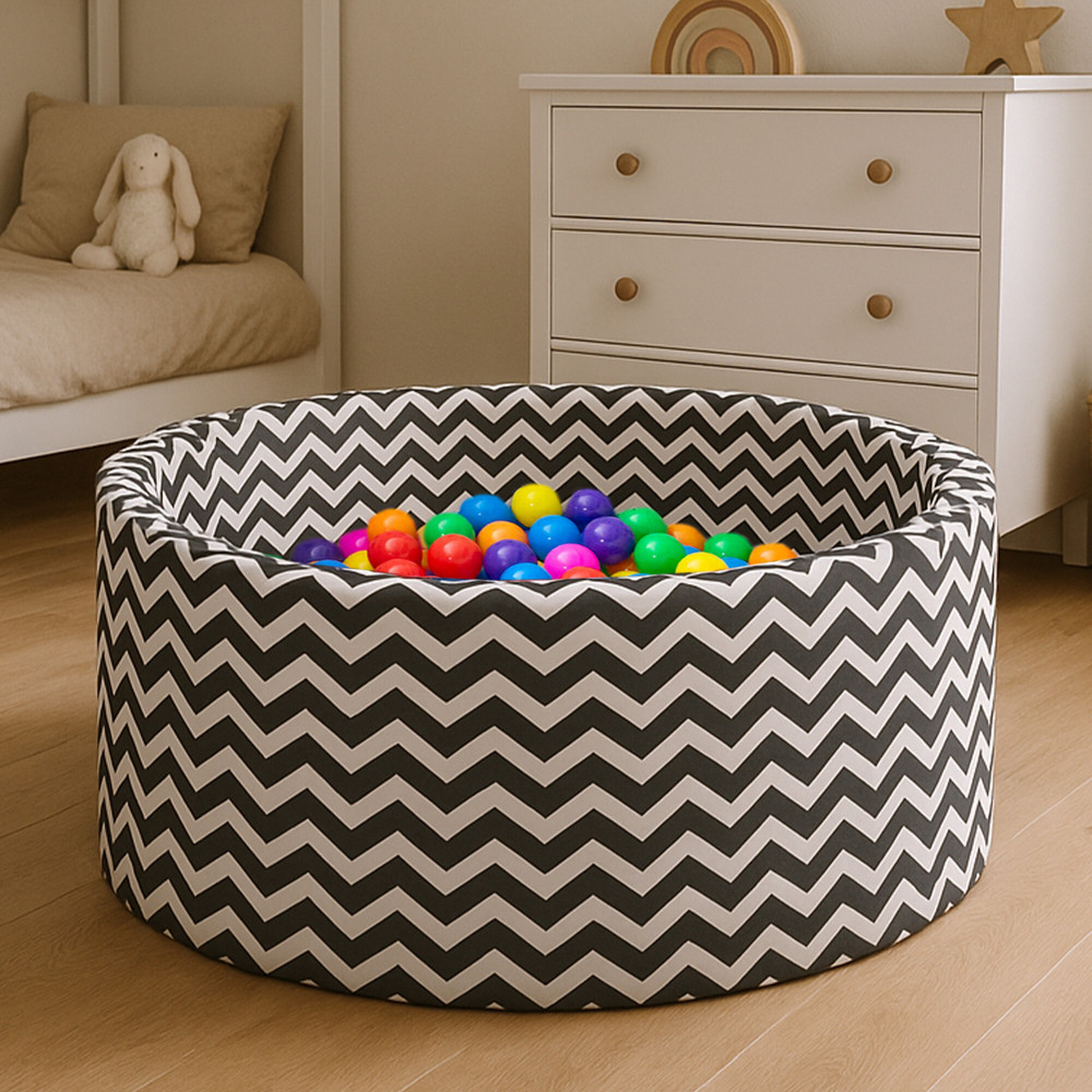 Máte doma dieťa, ktoré ani chvíľku neobsedí? Posaďte ho do tohto roztomilého bazénika, v ktorom sa dokáže skvele vyhrať a zabaviť. Steny bazénika sú vyplnené odolnou polyuretánovou penou, ktorá je potiahnutá látkou. V sade s bazénom je 200 farebných loptičiek (Ø 5,5 cm). Všetky použité materiály sú najvyššej kvality. Plastové guličky pre suchý bazén sú vyrobené z netoxického materiálu, bezpečné pre deti, veľmi flexibilné, nedeformovateľné, majú certifikát CE. Poťah bazénika je vďaka všitému zipsu odnímateľný a možno ho tak kedykoľvek zložiť a vyprať.